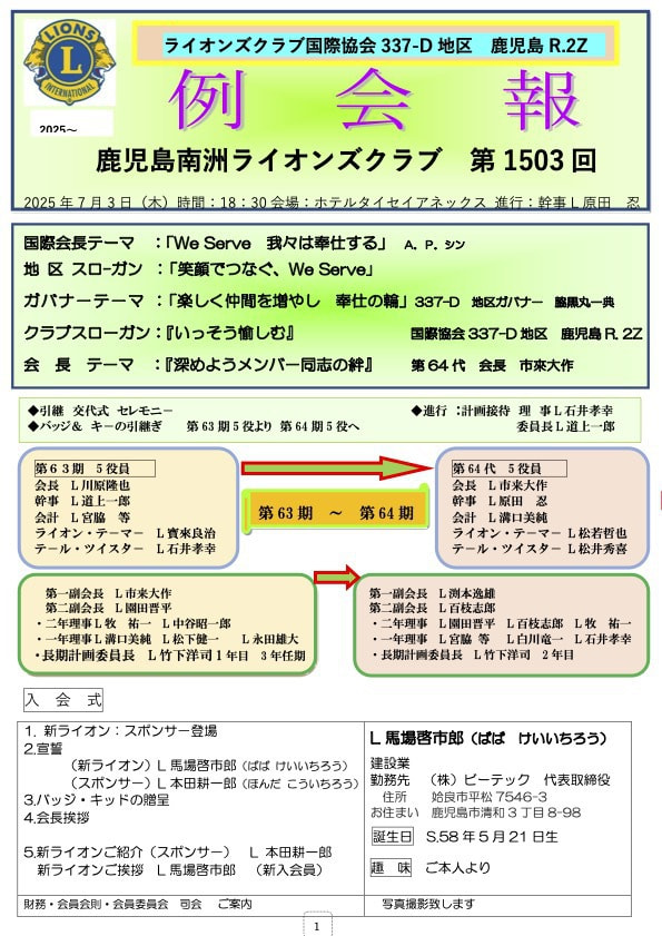 第1503回例会報2025年7月3日 |