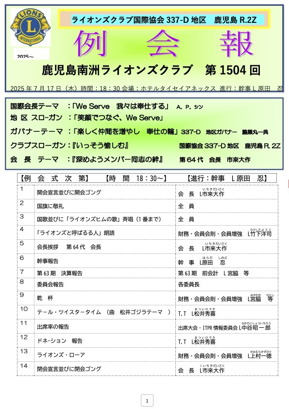 第1504回例会報2025年7月17日 |