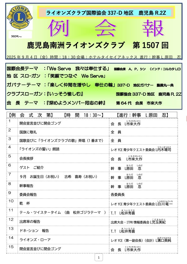 第1507回例会報2025年9月4日 |