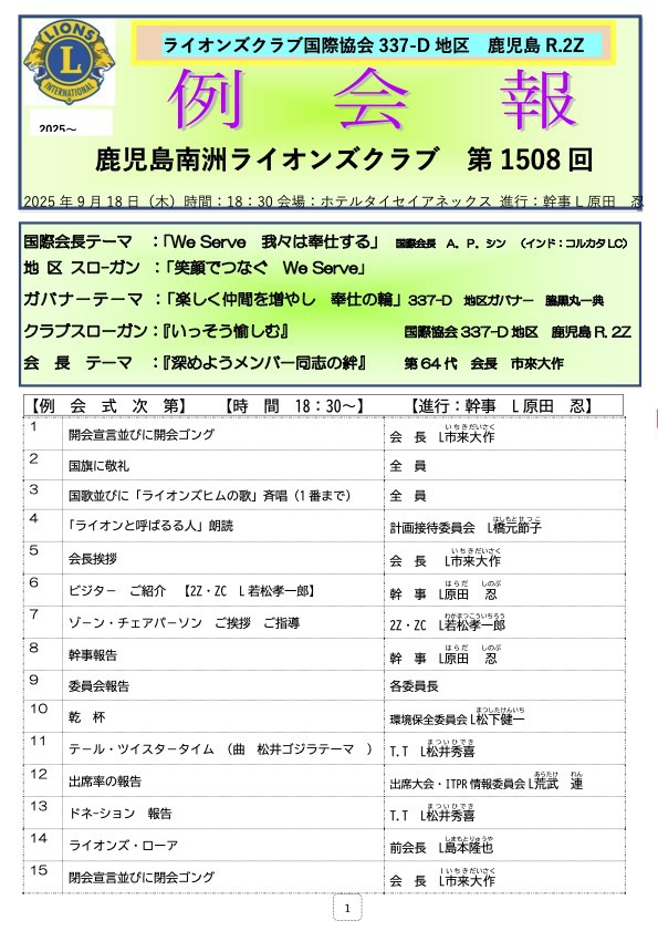 第1508回例会報2025年9月18日 |