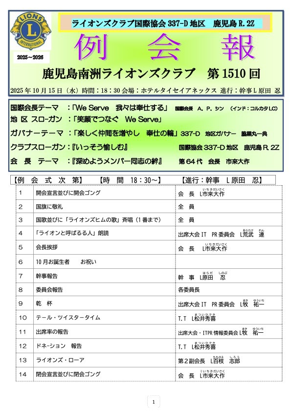 第1510回例会報2025年10月15日 |