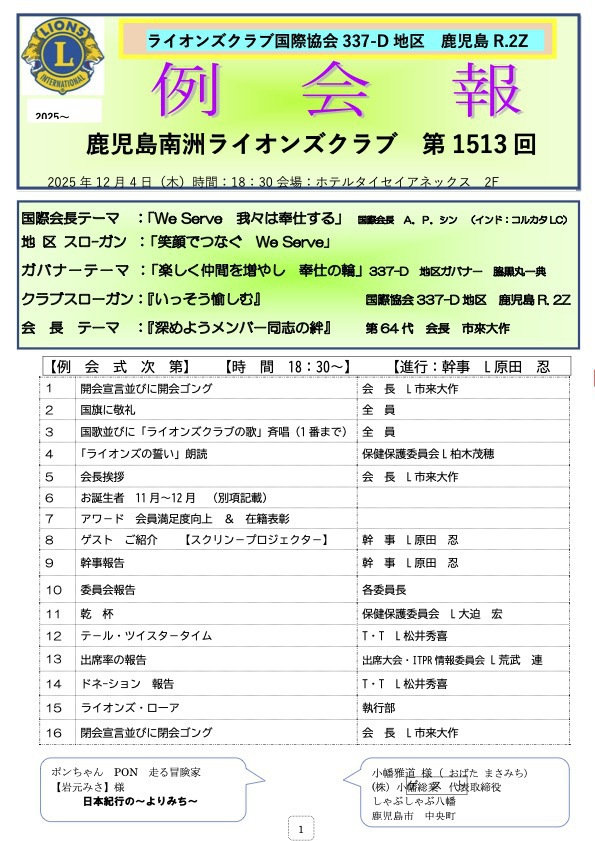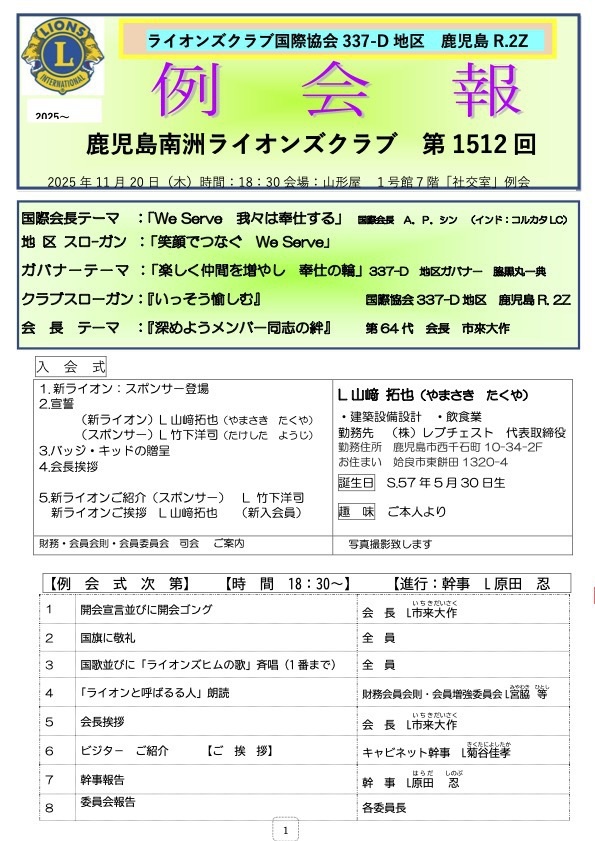 第1512回例会報2025年11月20日 |