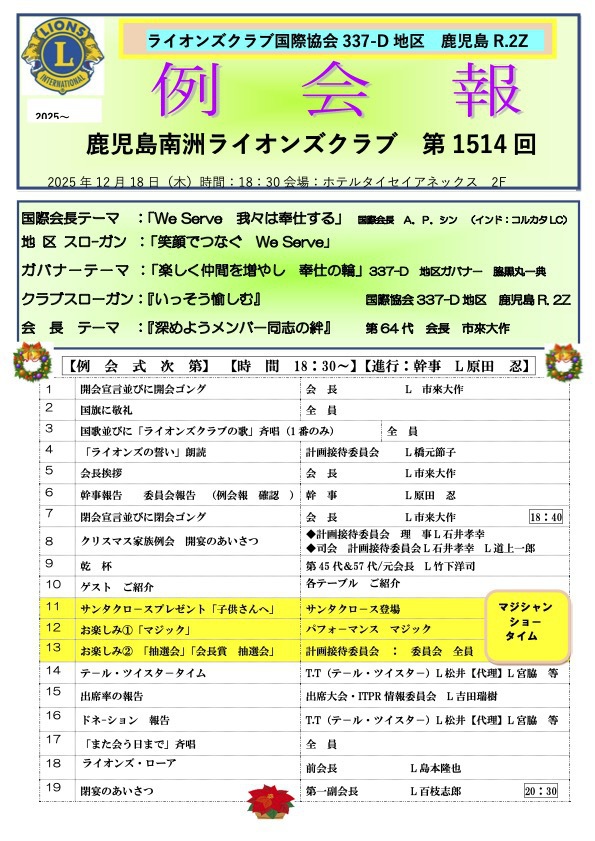 第1514回例会報2025年12月18日 |